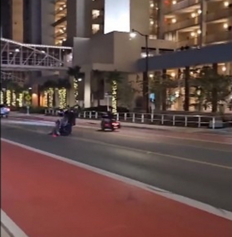 Stunt on motorcycle goes wrong