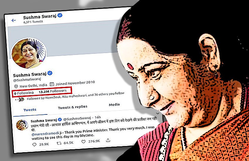 दरअसल, ट्विटर पर सुषमा स्वराज के 13.1 मिलियन फॉलोअर्स हैं। उनकी प्रोफाइल देखने पर पता चलता है कि सुषमा ने किसी को भी फॉलो नहीं किया है।