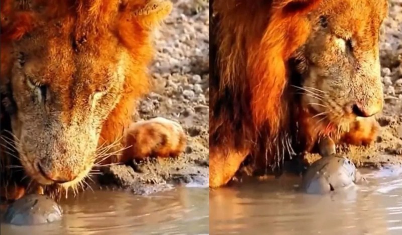सोशल मीडिया पर कछुए के शेर को पानी पीने से रोकने का वीडियो वायरल हो गया है और इसे ज़बरदस्त रिस्पॉन्स मिला है। यूज़र्स भी कछुए की हिम्मत से हैरान हैं पर उसकी हिम्मत की तारीफ भी कर रहे हैं।