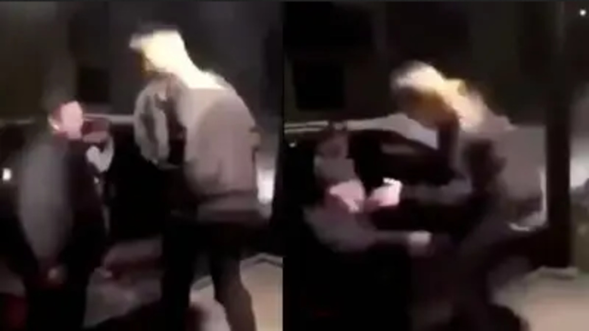 महिला ने शख्स को मारी लात और फिर उस पर थूका