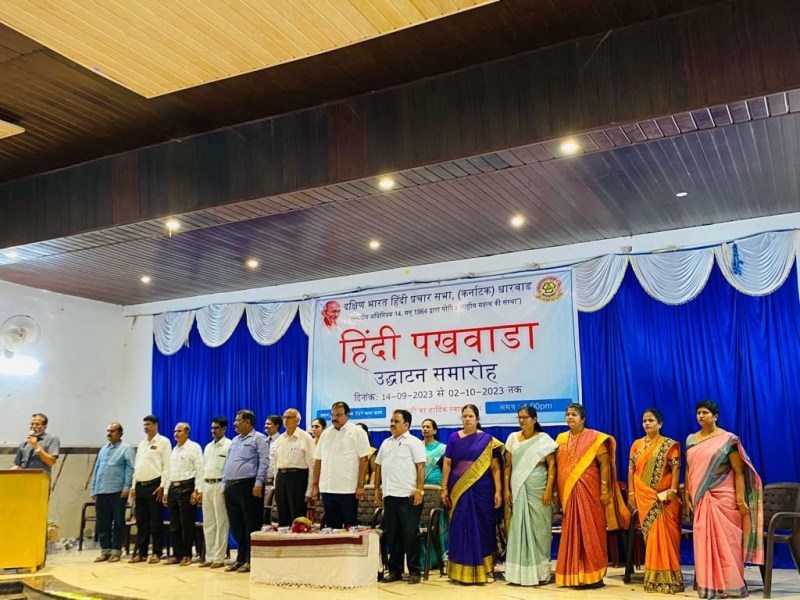 धारवाड़. दक्षिण भारत हिंदी प्रचार सभा धारवाड़ में हिंदी पखवाड़ा शुरू हुआ। समारोह के अध्यक्ष इरेश बी. अंचटगेरी ने अध्यक्षीय भाषण में कहा कि हिन्दी का प्रचार एवं प्रसार अपने घर से ही होना चाहिए। कार्यक्रम की शुरुआत दीपा कट्टी की प्रार्थना से हुई। प्रांतीय सचिव एस. राधाकृष्णन ने अतिथियों का स्वागत किया। विषय प्रतिपादन प्रो. अमरज्योति ने किया। प्रतिज्ञा वाचन डॉ. शकीला मुस्तफा ने किया। बीएड प्राचार्य डॉ. सी. एम. अडकी तथा एमएड प्राचार्य डॉ व्ही. बी. पूजार ने हिंदी दिवस के बारे में अपने विचार व्यक्त किए। बीएड प्रवक्ताओं की ओर से कविता वाचन हुआ। कायक्रम में विशेष सचिव डॉ. एस. बी. हिंचीगेरी तथा विभिन्न विभागों के मुख्याध्यापक और प्राचार्यगण, अध्यापक- प्राध्यापक कर्मचारी गण आदि उपस्थित थे। संचालन डॉ. विजय पाटील ने किया। हिंदी पखवाड़े के दौरान हिंदी को बढावा देने को लेकर कई कार्यक्रम आयोजित किए जाएंगे। अतिथियों ने दीप प्रज्ज्वलित किया। इस अवसर पर कई गणमान्य लोग मौजूद रहे।