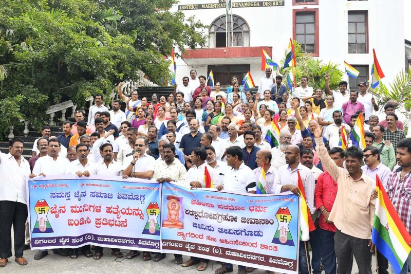 बेलगांवी जिले में चिक्कोडी तालुक के हिरेकोडी गांव स्थित नंदी पर्वत आश्रम के आचार्य कामकुमार नंदी की बर्बर हत्या की निंदा कर मंगलवार को शिवमोग्गा शहर के जिलाधिकारी कार्यालय परिसर में दिगम्बर जैन संघ की ओर से विरोध प्रदर्शन किया गया। बाद में राज्य सरकार को संबोधित ज्ञापन जिलाधिकारी को सौंपा गया। इस अवसर पर जैन समाज के कई लोग मौजूद थे।