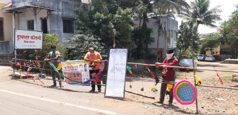 संभाजीनगर स्थित ड्राईवर कॉलोनी के युवक में कोरोना लक्षण पाए जाने के बाद यहां के निवासियों ने कॉलोनी की सड़क को बंद कर दिया। इस दौरान वहां चीनी सामान फैलाकर सभी देशवासियों से चीनी सामान का बहिष्कार करने को कहा।