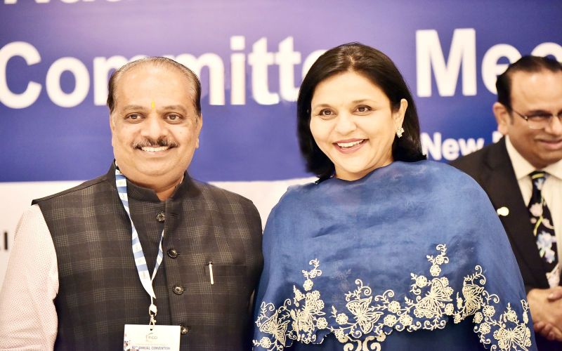 फिक्की’ की 92वीं सालाना सभा के अवसर पर राष्ट्रीय कार्यकारिणी सदस्य नवनिर्वाचित संचालक ललित गांधी का स्वागत करती फिक्की की नवनिर्वाचित अध्यक्ष एवं अपोलो हॉस्पिटल समूह की कार्यकारी संचालिका संगीता रेड्डी, साथ में निवर्तमान अध्यक्ष संदीप सोमानी।