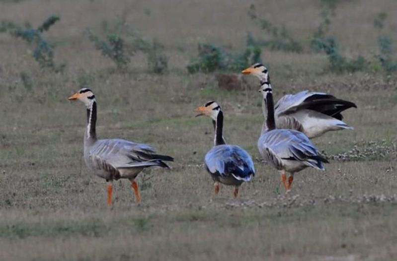 कुष्टगी तालुका के निडशेसी तालाब पर प्रवासी पंछियों का कलरव गूंजने लगा है। यहां सर्दी के मौसम के विशेष अतिथि मंगोलिया, कजाकिस्तान आदि देशों के धारीदार सिरवाले कालेहंस का आगमन होता है।