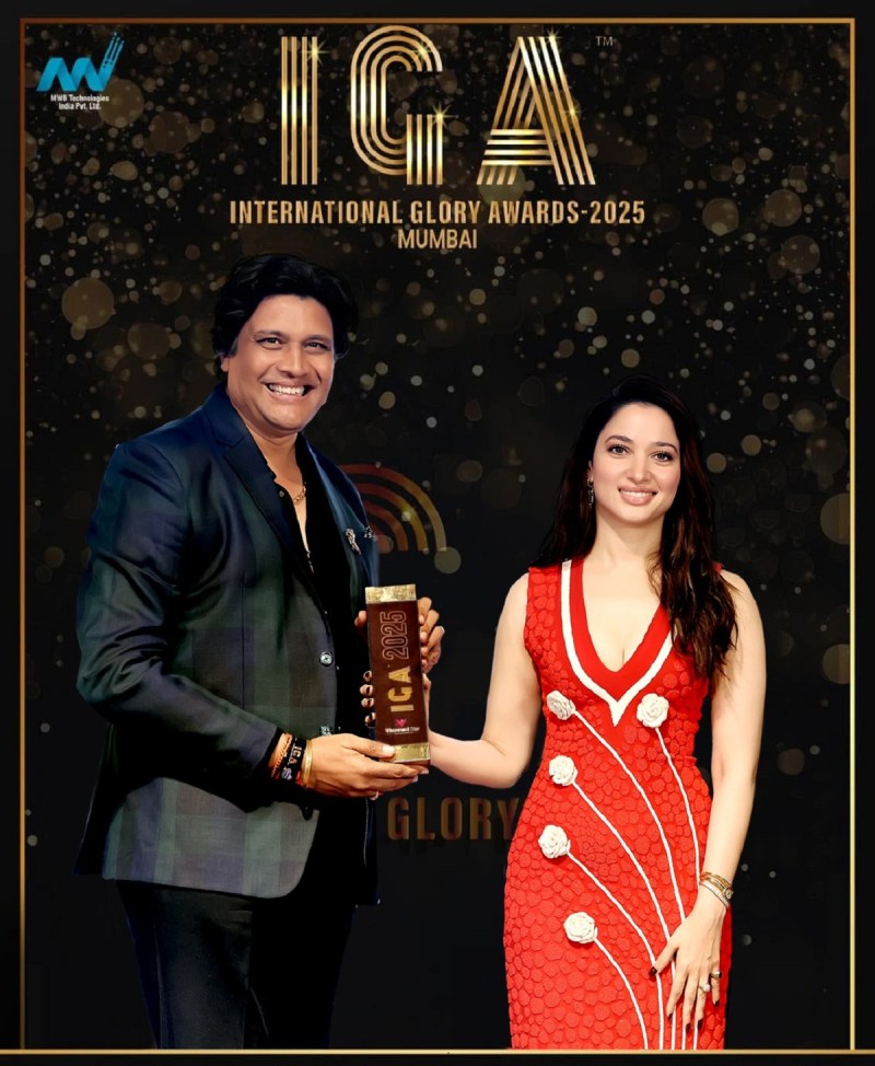 प्रसिद्ध बॉलीवुड अभिनेत्री तमन्ना भाटिया के हाथों अंतरराष्ट्रीय ग्लोरी अवॉर्ड ग्रहण करते एमडब्ल्यूबी टेक्नोलॉजीज के निदेशक गौतम बाफना।