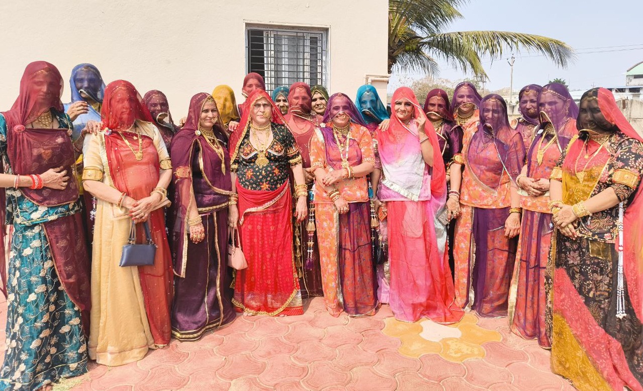 राजस्थानी वेशभूषा और ओढऩी की मर्यादा में सजी विश्नोई समाज की महिलाएं, बुदरसिंघी (हुब्बल्ली के पास) में होली पाहल के अवसर पर पारंपरिक लुर लेती हुई, जहां राजस्थान की संस्कृति और फागुन का उल्लास एक साथ साकार हो उठा।