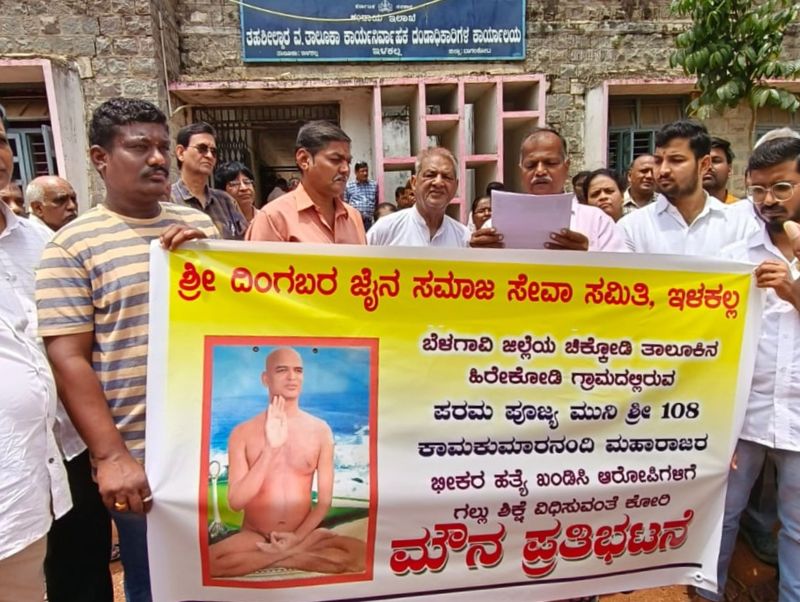 बेलगांव जिले में चिक्कोडी तालुक के हिरेकोडी गांव के नंदी पर्वत आश्रम के आचार्य कामकुमार नंदी की बर्बर हत्या करने के बाद आरोपीयों ने उनके शव के टुकड़े कर बोरवेल में फैंक दिए थे। इस भयानक कुकृत्य का विरोध जताने के लिए आज श्री दिगम्बर जैन समाज एवं श्वेताम्बर जैन समाज के लोग कंठी सर्कल में बड़ी तादाद में इक_े हुए और धरना प्रदर्शन किया। कंठी सर्कल से मौन रैली निकाली जो कंठी सर्कल से जूना मुनसिपालटी भवन, गांधी चौक, डॉ. अंबेडकर सर्कल, सरकारी अस्पताल मार्ग से होते हुए तहसीलदार कार्यालय के परिसर में पहुंच कर सभा में परिवर्तित हुई।