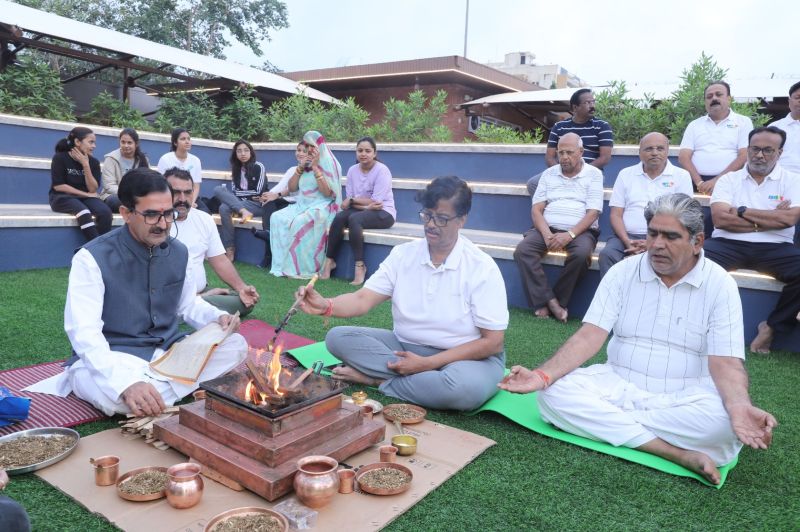 पतंजलि योग पीठ के योग गुरु आचार्य भवरलाल आर्य ने योग और अग्निहोत्र सत्र की शुरुआत की।