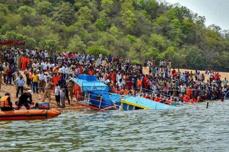 Hydrabad. आंध्र प्रदेश के गोदावरी जिले की गोदावरी नदी में नाव डूबने से 12 लोग काल के गाल में समा गए, 24 लोगों को डूबने से बचा लिया गया जबकि करीब 40 लोग अभी भी अथाह जल में कहां हैं किसी को कुछ पता नहीं। 500 मीटर गहरी नदी में अधिकांश पर्यटक जल्दबाजी में बिना लाइफ जैकेट पहने ही नाव पर बैठ गए। कुछ ने रोका तो अपनों ने टोका भी... मगर मौत उनको अथाह सागर में ले जाना चाहती थी इसलिए लोगां ने अपनों की बात भी हवा में उड़ा दी। लागों की मानें तो नाव में 63 पर्यटक, 8 क्रू सदस्य थे। बारिश के कारण गोदावरी नदी में बहाव तेज था और तभी नाव एक चट्टान से टकरा गई। अधिकतर लोग नाव से छिटककर पानी में जा गिरे। जिनके पास लाइफ जैकेट थी वे कुछ देर तैरकर किनारे लग गए जिन्हें स्थानीय लोगों ने बाहर निकाला मगर कुछ नसीब के मारे दरिया में ही समा गए।