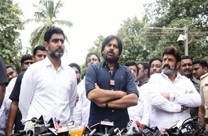 राजमुंदरी. फिल्म अभिनेता से राजनेता बने जन सेना प्रमुख के पवन कल्याण ने गुरुवार को तेलुगु देशम पार्टी (तेदेपा) के साथ अपनी पार्टी के गठबंधन की पुष्टि की और कहा कि दोनों पार्टियां अगला चुनाव मिलकर लड़ेंगी। पवन कल्याण ने तेदेपा के राष्ट्रीय महासचिव नारा लोकेश और हिंदूपुर तदेपा विधायक एन बालकृष्ण के साथ आज यहां केंद्रीय जेल में पूर्व मुख्यमंत्री एन चंद्रबाबू नायडू से मुलाकात की। बाद में मीडिया को संबोधित करते हुए पवन कल्याण ने कहा कि उन्होंने तेदेपा के साथ गठबंधन करने का फैसला किया है और दोनों दल अगले चुनाव में एक साथ चुनाव लड़ेंगे। उन्होंने कहा कि मेरा उद्देश्य यह सुनिश्चित करना है कि वाईएसआरसीपी विरोधी वोट विभाजित न हों। यही कारण है कि तदेपा और जेएसपी अगले चुनाव में गठबंधन करेंगे और चुनाव लड़ेंगे। यह स्पष्ट करते हुए कि वह अब भाजपा के नेतृत्व वाले राजग में हैं। पवन कल्याण ने कहा कि मेरा दृढ़ विश्वास है कि भाजपा सबसे खराब राजनीतिक स्थिति और आंध्र प्रदेश में व्याप्त अराजकता को समझ सकती है और हमारे साथ आ सकती है। मैं भाजपा नेतृत्व को आंध्र प्रदेश की राजनीतिक स्थिति समझाऊंगा। उन्होंने उम्मीद जतायी की मुझे उम्मीद है कि भाजपा, तेदेपा-जेएसपी गठबंधन में शामिल हो सकती है।
