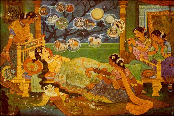 प्रभु माहावीर के जन्म से पूर्व एक बार महारानी त्रिशला नगर में हो रही मंगलकारी घटनाओं के बारे में सोचते हुए निंद्रालीन हुईं तब उन्हें 16 स्वप्नों के दर्शन हुए। स्वप्न देखने के बाद माहारानी बेहद प्रसन्नचित्त थी। लेकिन इन स्वप्नों के उत्तर को जानने का कोतूहल भी था।