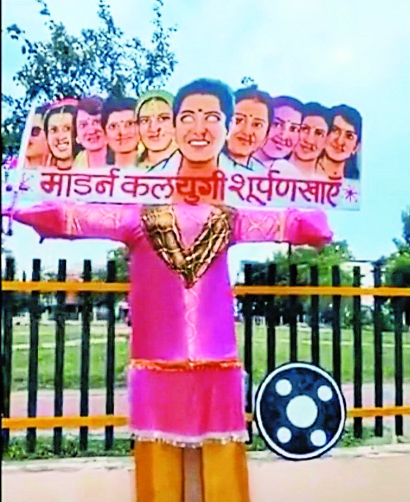 जलाने से पहले मॉडर्न सुर्पणखा का पुतला जब्त