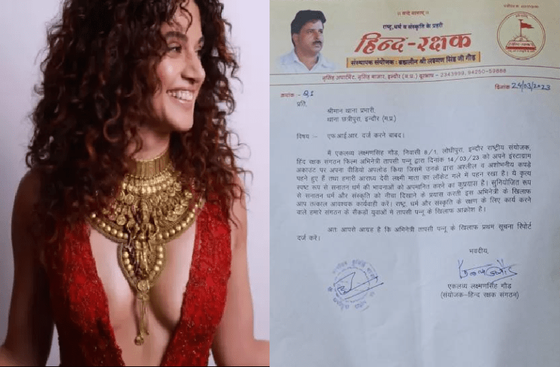 दरअसल, इस मामले को लेकर हिंद रक्षक संगठन की ओर से पुलिस को एक शिकायती पत्र दिया गया है। छत्रीपुरा पुलिस को यह शिकायती पत्र हिंद रक्षक संगठन के संयोजक एकलव्य सिंह गौर की ओर से दिया गया है। इस पात्र में एकलव्य सिंह गौर की ओर से एक्ट्रेस तापसी पन्नू के खिलाफ केस दर्ज करने की मांग की गई है।