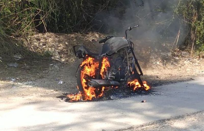Burning Bike : खड़ी बाइक में लगी भीषण आग, युवक ने सच किया उजागर