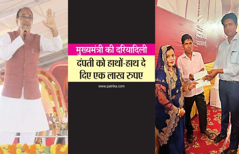 कार्यक्रम खत्म होने के दौरान वे काफिले के पास तक पहुंच गए, लेकिन सुरक्षा कारणों से उन्हें रोक दिया गया। धक्का लगने से दोनों गिर गए। सीएम शिवराज सिंह चौहान ने गाड़ी रोककर बात की तो प्रकाश ने बताया कि वे चमड़े के खिलौने बनाते हैं, लेकिन पैसे नहीं होने से काम नहीं कर पाते हैं। इस पर मुख्यमंत्री शिवराज सिंह चौहान ने वहां मौजूद अपर कलेक्टर राजेश राठौर को मुख्यमंत्री स्वेच्छा अनुदान से पति-पत्नी को 50-50 हजार रुपए देने को कहा। कलेक्टर डॉ. इलैया राजा के निर्देश पर रेडक्रॉस से एक लाख का चेक दिया।