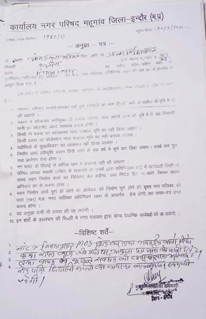 रहवासियों के पास जो नक्शे व अनुज्ञा हैं, उन्हें हम देखेंगे। साथ ही काॅलोनी से संबंधित उस समय के नियमों का भी अध्ययन किया जाएगा व सारी छानबीन के बाद ही स्पष्ट होगा कि वहां भवन निर्माण की अनुमति नगर परिषद से किस कंडिशन में दी थी। हालांकि जो काॅलोनी हैंडओवर नहीं हैं, वहां नप से भवन निर्माण की अनुमति तो मिलती नहीं है।-आधारसिंह, सीएमओ, नगर परिषद महूगांव