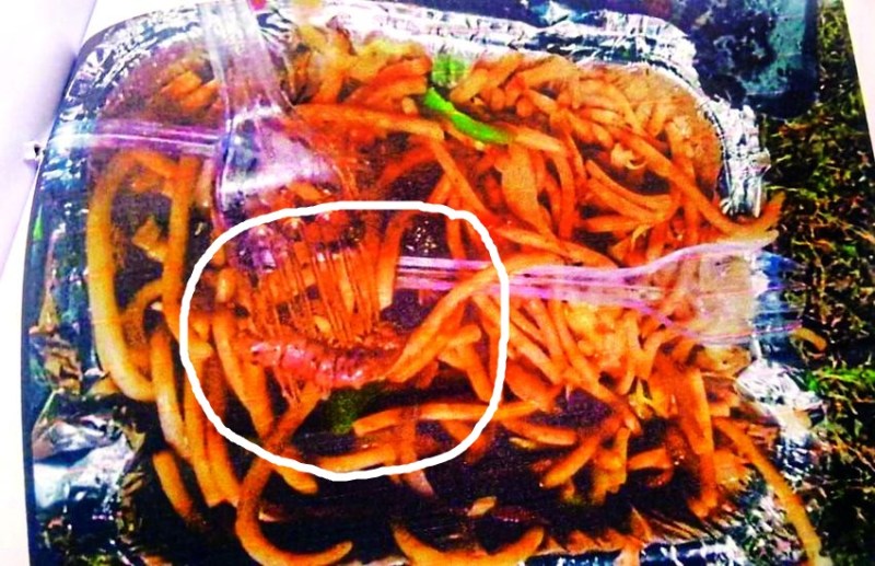 फोरम के अध्यक्ष ओमप्रकाश शर्मा और सदस्य सुमित्रा हाथीवाला के समक्ष यह परिवाद पेश किया गया था। भंवरकुआं में रहने वाली प्रियंका रघुवंशी ने 14 नवंबर 2018 को जोमेटो के माध्यम से एक मंचूरियन और वेज नूडल्स ऑर्डर किया था, जो मनभावन कचोरी सेंटर से आना था। निर्धारित समय पर डिलीवरी बॉय ऑर्डर लेकर आया। प्रियंका ने जब नूडल्स खोला तो उन्हें करीब डेढ़ इंच का जिंदा कीड़ा नजर आया।