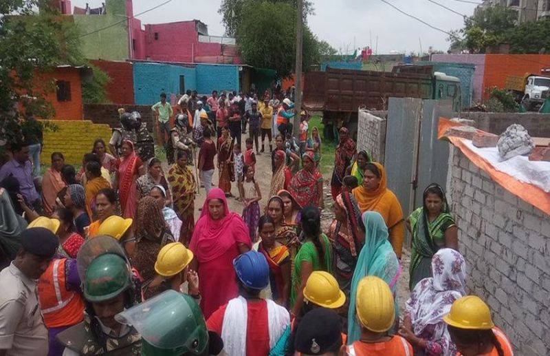 VIDEO : डायमंड कॉलोनी से अवैध निर्माण हटाने पहुंची निगम की टीम, महिलाओं ने किया पथराव