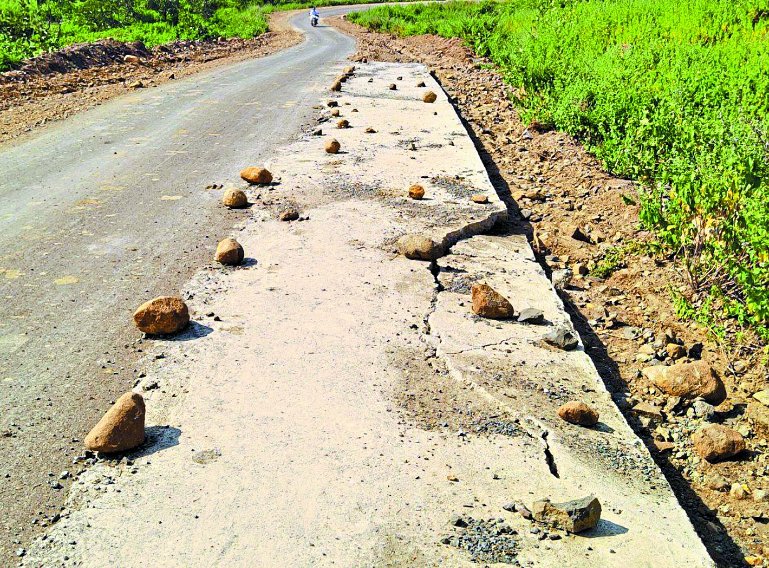 डामर सडक़ का कुछ ही महीने में खराब हो गई थी। कार्य पूर्ण नहीं होने से पहले ही कई बार सडक़ को रिपेयर किया जा चुका है। घटिया निर्माण के चलते सडक़ पर बड़े-बड़े गड्ढे हो रहे हैं। टूटी हुई साइड स्वयं अपनी गवाही दे रही हैं। प्रधानमंत्री ग्रामीण सडक़ योजना घटिया निर्माण की बलि चढ़ते दिख रही है जो की समय से पूर्व ही दम तोड़ रही है। दर्जनों काम अधूरे पड़े हुए हैं जो आज तक पूर्ण नहीं हुए।