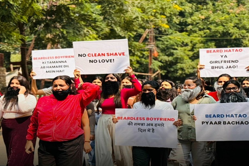 दरअसल सोशल मीडिया पर एक वीडियो तेजी से वायरल हो रहा है, जिसमे दर्जनों लड़कियां सड़कों पर अपने अनोखे मांग के साथ दिखाई दे रही हैं। इस दौरान उन्होंने नकली दाढ़ी और मूछ भी अपने चेहरे पर लगाया हुआ है। वीडियो में आप देख सकते हैं कि लड़कियां 'दाढ़ी रखों या गर्लफ्रेंड रखो' के नारे लगा रही हैं। साथ ही वह 'नो क्लीन सेव नो लव' भी कहते हुई नजर आ रही हैं। सभी के हाथों में तख्तियां मौजूद है जिसपर उनकी डिमांड लिखी हुई दिख रही हैं।