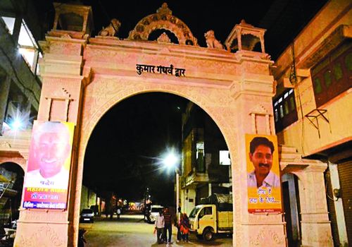 टेकरी जाने वाले मार्गको सुंदर बनाने के लिए गेट बनाया गया है। गेट बनते ही नेताओं के पोस्टर टंगना भी शुरू हो गए है। रात में गेट के दोनों और पोस्टर लगा दिए गए हैं।