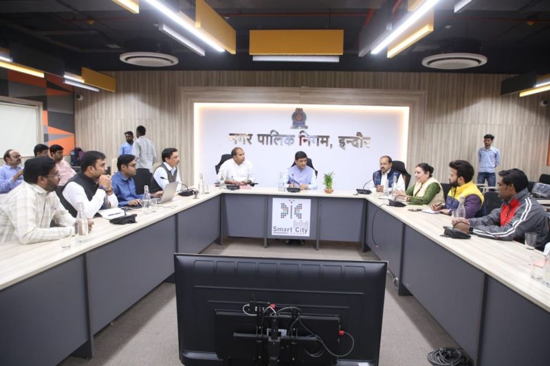 एआइसीटीएसएल अफसरों की बैठक लेते इंदौर महापौर पुष्यमित्र भार्गव