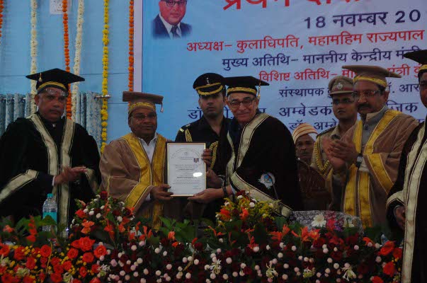 यह भी पढ़ें- #Blackmoney बचाने में जुटे इंदौरी, लोगों ने रातों रात लिया चौंकाने वाला फैसलाविश्वविद्यालय के कुलपति डॉ. आरएस कुरील के अनुसार देश में 63 साल बाद किसी दलित को मानद उपाधि मिली, 12 दिसंबर 1953 को डॉ. भीमराव आंबेडकर को हैदराबाद की उस्मानिया यूनिवर्सिटी ने मानद उपाधि सौंपी थी। वहीं, किसी आदिवासी को देश में पहली बार यह उपाधि दी गई। समारोह में मंत्री गेहलोत ने कहा यह विश्वविद्यालय डॉ. आंबेडकर की सोच के अनुसार समाज में काम कर रहा, जिसकी आज के समय में सबसे ज्यादा आवश्यकता है।