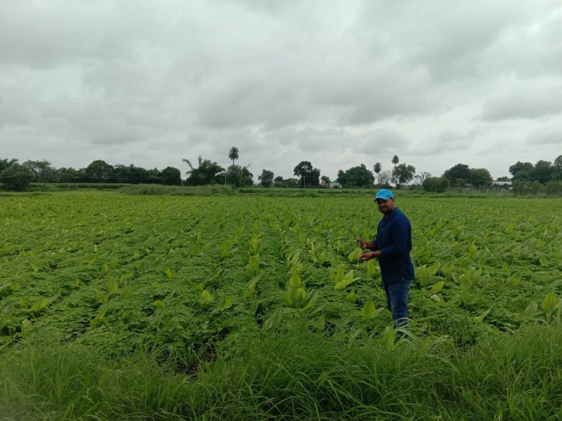 जितेंद्र ने इस बार जून में चार बीघा में राजापुरी, बाईगांव, प्रगति, चिन्ना सेलम, आंबा हल्दी, काली हल्दी और पितांबरी हल्दी वैरायटी लगाई है। 24 इंच की जगह छोड़ हल्दी के गाठं बोई गई। खाली जगह में ढैंचा पौधा लगाया। वर्तमान में हल्दी और ढैंचा का पौधा एक-एक फिट के हो चुके है। लेकिन अभी तक एक भी किट ने हल्दी की फसल को नुकसान नहीं पहुंचाया है। किट होते भी है तो ढैंचा के पौधा को खुराक बना रहे है। ढैंचा के पौध 3 फीट के होने पर उन्हें उखाड़कर उसी जगह पर डाल दिया जाएगा, जिससे यहां डलने वाली वर्मी कंपोस्ट के बाद केचुंए उन्हे आहार बनाएंगे। 8 माह तक यह फसल तैयार हो जाएगी।