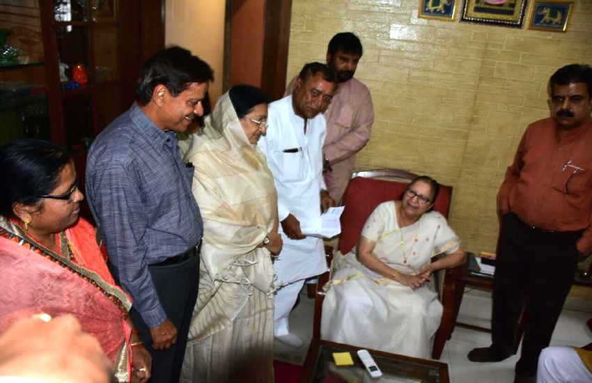 VIDEO : सुमित्रा महाजन ने चुनाव लडऩे से किया इंकार, घर पर मनाने पहुंचे भाजपा के कई नेता
