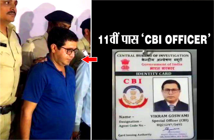 इंदौर पुलिस के शिकंजे में खड़े ये दोनों लोगों ठग हैं। ब्लू टीशर्ट और चश्मा में खड़े व्यक्ति का नाम विक्रम गोस्वामी है। पुलिस ने इसे इंदौर के रतलाम कोठी से गिरफ्तार किया है। लेकिन उसके पास जो आईडी कार्ड था, उसमें उसकी पहचान सीबीआई के स्पेशल ऑफिसर विक्रम गोस्वामी के रूप में है। यह कार्ड उसका हथियार था, जिस पर यकीन मान कई लोग लूट गए।