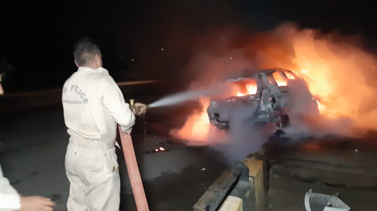 घायलों को बाहर निकालने के कुछ ही सेकंड के बाद गाड़ी में आग लग गई। अगर उन्हें बाहर निकालने में देरी हो जाती, वह भी कार के साथ ही जल जाते। सूचना पर फायर ब्रिगेड का दल भी वहां पर पहुंच गया था, लेकिन आग इतनी भीषण थी कि कुछ ही देर में कार को चपेट में ले लिया। फायर ब्रिगेड को भी उसे बुझाने में काफी मशक्कत करना पड़ी। करीबन आधा टैंक पानी की मदद से आग पर काबू पाया गया।