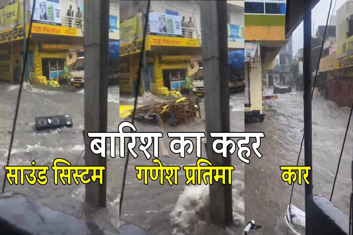 Heavy rain: मध्यप्रदेश में कई जिलों में लगातार हो रही बारिश के कारण बाढ़ के हालात बन गए हैं। इंदौर में भी शुक्रवार के बाद शनिवार को जमकर बारिश हुई है जिसके कारण कई इलाकों में बाढ़ के हालात बन गए और कई घरों में बारिश का पानी भर गया। शहर के प्रजापत नगर में तो बारिश के कारण सड़कों पर पानी का बहाव इतना तेज था कि यहां एक गणेश पंडाल व कार बह गए। गणेश पंडाल व कार के बहने का वीडियो भी सामने आया है।