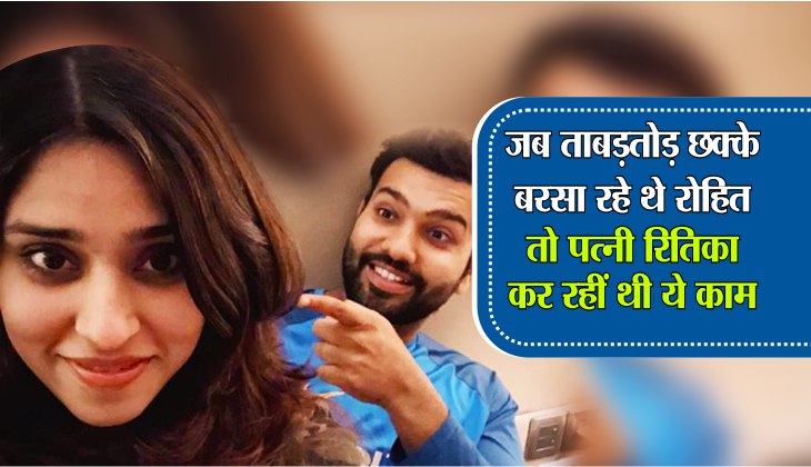 जब रोहित श्रीलंका के खिलाफ रिकॉर्ड तोड़ पारी खेल रहे थे तब रितिका भी स्टेडियम में ही मौजूद थीं। रोहित ने 35 गेंदों में यह रिकॉर्ड बनाया लेकिन रिकॉर्ड से ठीक पहले 34वीं गेंद पर उन्हें यह रिकॉर्ड पूरा करने के लिए 3 रन की जरूरत थी। इस वक्त रोहित के सामने एंजेलो मैथ्यूज गेंद फेंक रहे थे और यह उनके ओवर की दूसरी गेंद थी। इस वक्त रोहित की पत्नी रितिका ने हाथ ऊपर किए और भगवान की ओर देखते हुए दुआ मांगने लगी। स्टेडियम में मौजूद दर्शकों का ध्यान भी इस वक्त रितिका और रोहित की तरफ ही था। रोहित ने एंजेलो मैथ्यूज की इस गेंद पर कोई मौका न गंवाते हुए चौका जड़ दिया और विश्व रिकॉर्ड बना डाला।