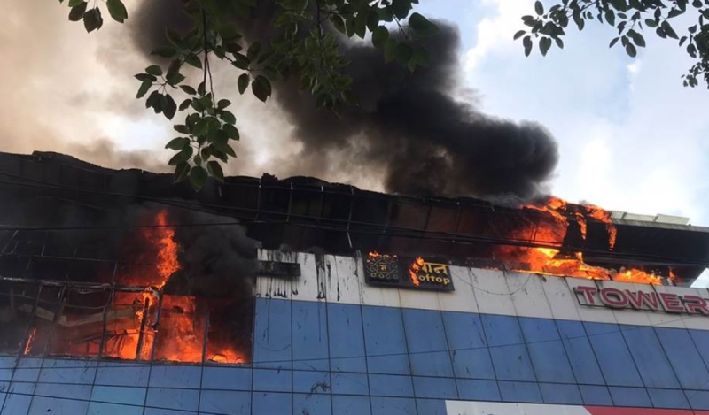 बिल्डिंग में रूफटाप रेस्टोरेंट में आग लगी