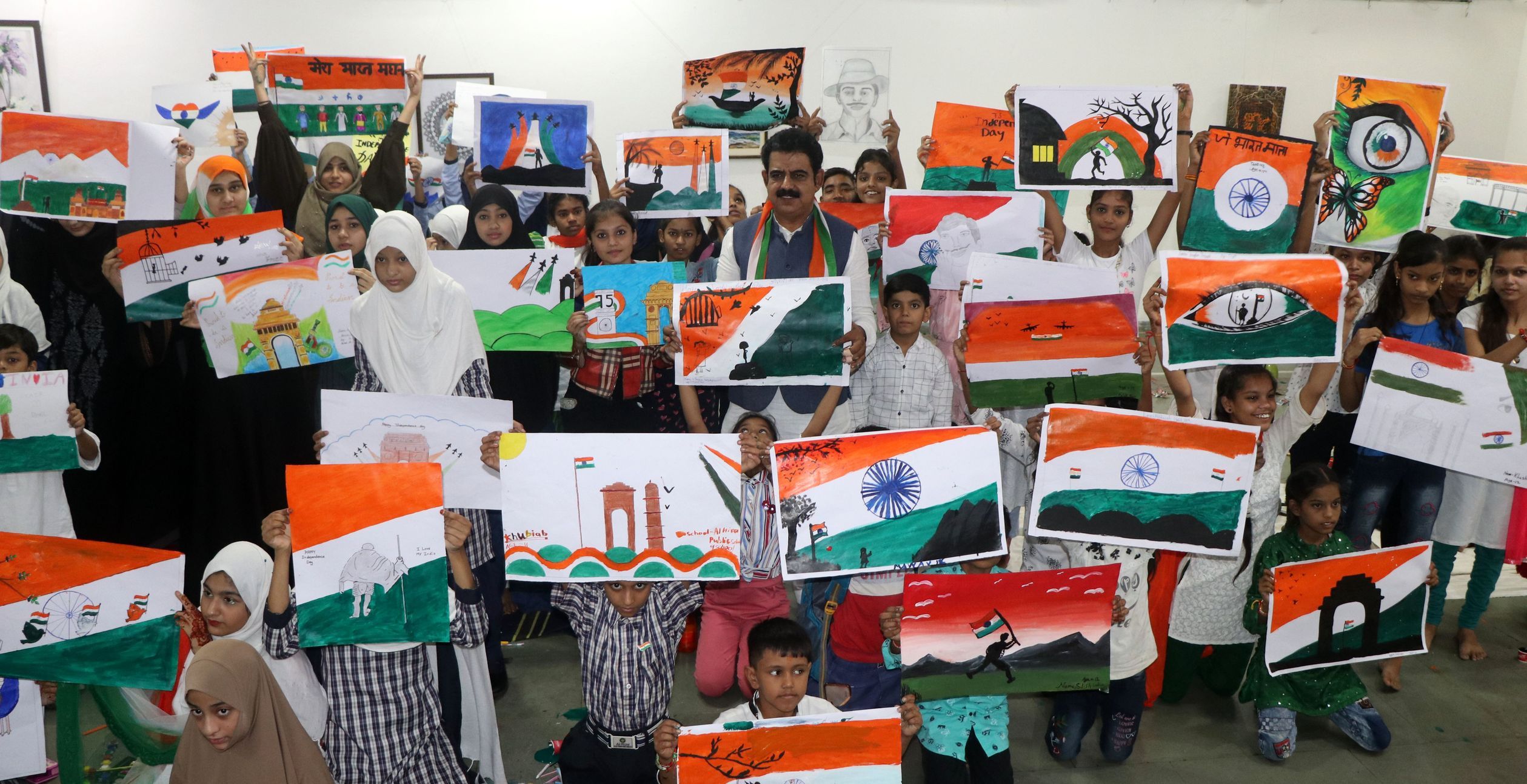 नन्हों ने कैनवास पर भरे अपने मन के रंग, उकेरा स्वतंत्र भारत के विभिन्न रंग