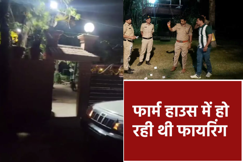 तेजाजी नगर स्थित उमरीखेड़ा गांव में फॉर्म हाउस में गोली चलने की जांच करती पुलिस।