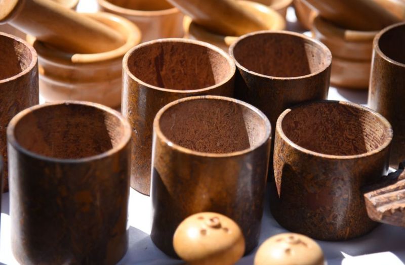 राजस्थान के जैसलमेर से सुशील कुमार चट्टानों से निकलने वाले पत्थरों से बने गिलास, चम्मच, कटोरी जैसे कई उत्पाद लेकर आए हैं। उन्होंने बताया, राजस्थान में रेत के टीलों के साथ जब पेड़-पौधे जमीन में धंस जाते हैं, तब एक सालों बाद वे बड़ी चट्टानों में तब्दील हो जाते हैं। इन चट्टानों से येलो स्टोन निकलता है। इससे कई तरह के उत्पाद बनाए जाते हैं। ये पूरी तरह प्राकृतिक और सेहत के लिहाज से इनका प्रयोग फायदेमंद होता है। इसके अलावा हम जैसलमेर से 40 किमी दूर स्थित हाबुर गांव में पाए जाने वाले विशेष प्रकार के पत्थर के उत्पाद लेकर आए हैं। इसमें बिना जामन का प्रयोग किए सिर्फ दूध डालने से ही दही जम जाता है। इन्हें स्वर्णगिरी पत्थर और हाबुर स्टोन के नाम से जाना जाता है। इस पत्थर में दूध डालने के 12 से 14 घंटे बाद दही तैयार हो जाता है। यह पत्थर समुद्री जीव-जंतुओं के जीवष्म से तैयार हुआ है। इसमें बायो केमिकल, अमीनो एसिड, फिनाइल एलीनिया जैसे तत्व होते हैं जो दूध को दही में बदल देते हैं।