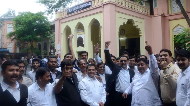 वकीलों ने किया कोर्ट परिसर में प्रदर्शन -