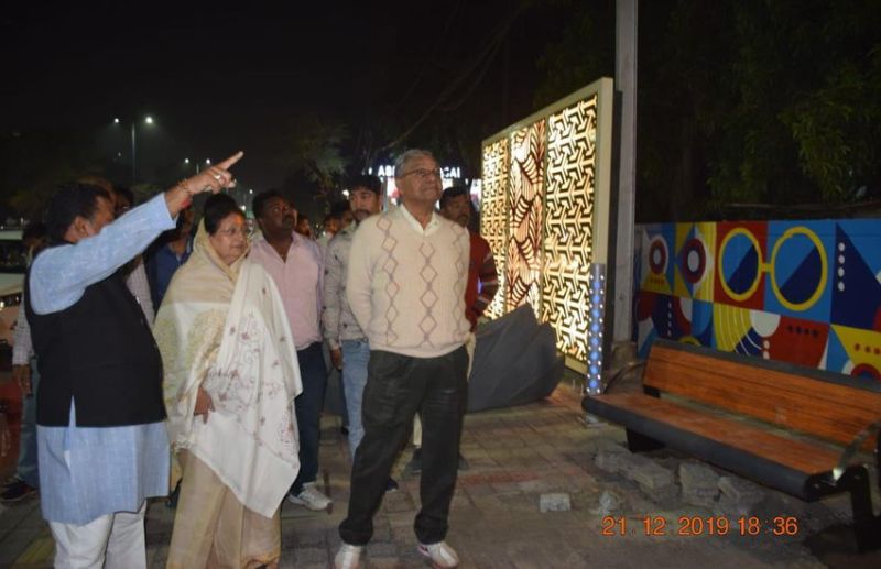 आदर्श सडक़ का निरीक्षण करतीं महापौर मालिनी गौड़ व विधायक हार्डिया।
