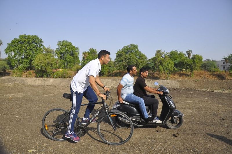 नदी की सफाई को देखने साइकिल से आगे-आगे चले मंत्री और पीछे बाइक पर आए अफसर