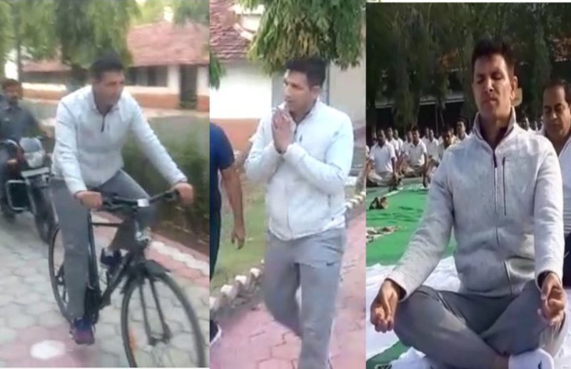 VIDEO : साइकिल से योग करने पहुंचे मंत्री पटवारी, बोले- खेल में योगा को भी करूंगा शामिल
