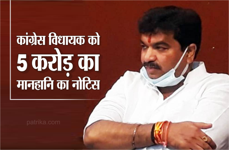कांग्रेस विधायक को भेजा 5 करोड़ का मानहानि नोटिस
