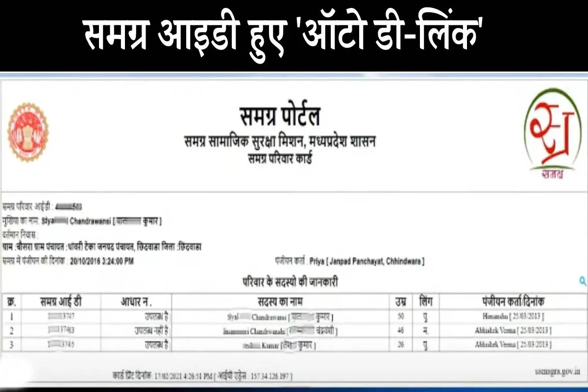 मालूम हो, कुछ समय पहले फर्जी समग्र आइडी का मुद्दा उठा था। इसके बाद प्रदेश सरकार ने सभी कलेक्टर्स को जिलेवार केवायसी के माध्यम से समग्र आइडी की जांच कराने के निर्देश दिए थे। यदि फर्जी आइडी है तो उसे पोर्टल से हटाया जाए। इसी क्रम में इंदौर नगर निगम ने भी समग्र आइडी केवायसी के लिए अभियान चलाया था। जोनवार प्रभारी नियुक्त किए गए थे। इस दौरान 7 लाख 5 हजार 956 लोगों ने केवायसी नहीं कराई, निगम ने इन्हें डुप्लीकेट समग्र आइडी मानते हुए डिलीट (डी- एक्टीवेट) कर दिया।