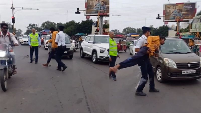 यह मामला शहर के पलासिया चौराहे का है। जहां ट्रैफिक पुलिस के जवान सुमंत सिंह चौराहे पर यातायात व्यवस्था संभाल रहे थे। तभी उनके साथ यातायात विभाग का एक वार्डन मौजूद था। इसी दौरान बीच सड़क पर एक शराबी हंगामा करने लगा। जिसके बाद वार्डन से चौराहे हटने को कहा था तो वह बदतमीजी करने लगा। तभी इसे देखने के बाद ट्रैफिक पुलिस के जवान सुमंत सिंह युवक के पास पहुंचे और उसे हटने के लिए कहा।