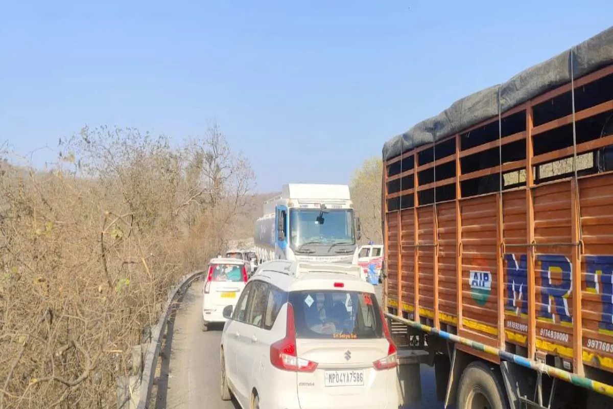 भेरूघाट के घाट सेक्शन में शनिवार सुबह दो भारी वाहन अलग-अलग स्थानों पर खराब हो गए थे। सड़क अपेक्षाकृत संकरी होने और ढलान वाले हिस्से में ट्रकों के खराब होने से पीछे से आने वाले वाहनों की रफ्तार थम गई। कुछ ही देर में दोनों ओर वाहनों की लंबी कतार लग गई और यातायात पूरी तरह प्रभावित हो गया। स्थिति तब और बिगड़ गई जब कुछ वाहन चालकों ने ओवरटेकिंग का प्रयास किया, जिससे जाम और लंबा होता चला गया।