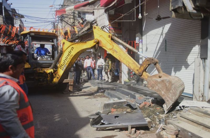 सिंधी कॉलोनी में चला निगम का बुलडोजर, दुकानें तोड़ी