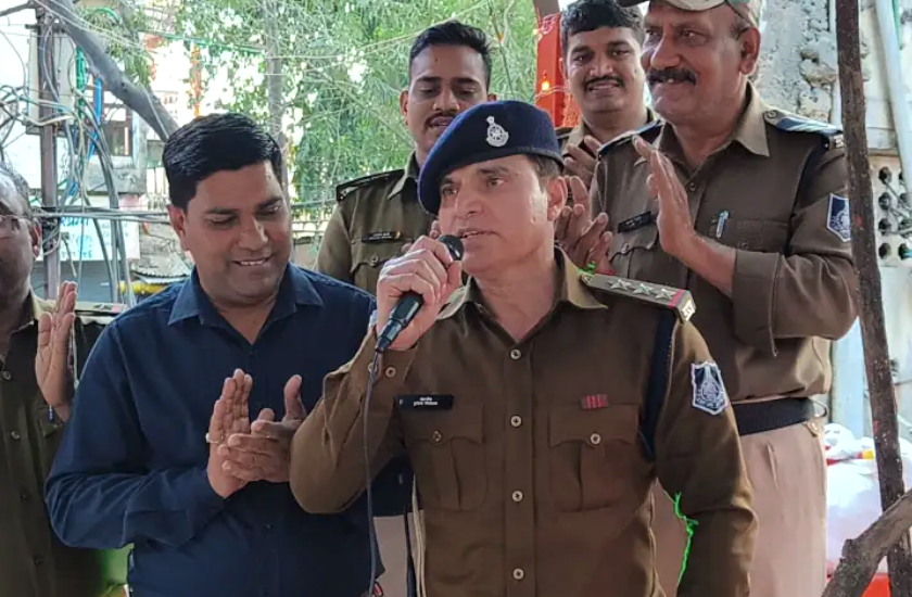 आपको बता दें कि, शहर के संयोगितागंज थाना प्रभारी तहजीब काजी अपनी ड्यूटी के साथ साथ लीग से हटकर काम करने के चलते हमेशा सुर्खियों बने में रहते हैं। कभी इन्हें साइकिल पर सवार होकर पुलिसिंग करते देखा गया तो कभी कसरत, दौड़ लगाकर सुर्खियां बटोरते नजर आए। अब इस बार थाना प्रभारी कौमी एकता की मिसाल पेश करते दिख रहे हैं। आपको बता दें कि, रविवार को थाना प्रभारी तहजीब काजी की तरफ से थाना परिसर में ही शिव भंडारे का आयोजन कराया गया था, जिसमें उन्होंने न सिर्फ थाना क्षेत्र के लोगों के साथ साथ विभाग के अफसरों को भंडारे में आमंत्रित किया, बल्कि राम भजन गाकर आयोजन को भक्तिमय भी किया।