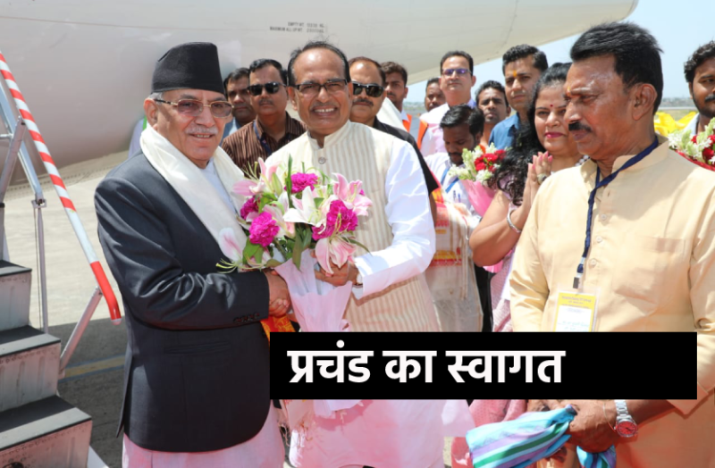 भारत दौरे पर आए नेपाल के पीएम पुष्प कमल दहल प्रचंड का स्वागत मुख्यमंत्री शिवराज सिंह चौहान और मंत्री तुलसी सिलावट ने इंदौर एयरपोर्ट पर किया। एयरपोर्ट पर इंदौर के 50 सदस्यीय दल ने ढोल-ताले और केसरिया ध्वज के साथ पीएम का स्वागत किया। इस मौके पर आदिवासी क्षेत्र के भगौरिया नृत्य हुआ वहीं निमाड़ के पारंपरिक गणगौर नृत्य से स्वागत किया गया। इस मौके पर नेपाल के पीएम ने मध्यप्रदेश की संस्कृति की झलक देखकर कहा कि मैं यह नजारा देखकर अभिभूत हो गया।