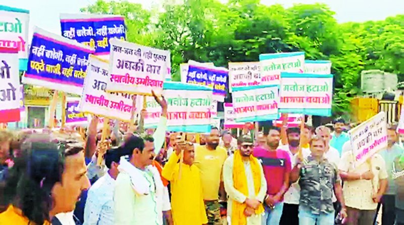 कार्यकर्ता शुरू से ही स्थानीय उम्मीदवार की मांग कर रहे थे, लेकिन मनोज का नाम उम्मीदवार के रूप में घोषित होने के बाद उनका सब्र का बांध टूट गया और सडक़ पर प्रदर्शन करने उतर आए। देपालपुर के साथ ही महू, विधानसभा चार, विधानसभा पांच में भी विरोध के स्वर उठते रहे हैं। महू और देपालपुर में स्थानीय उम्मीदवार की मांग उठ रही है। कार्यकर्ताओं ने पोस्टर तक लगाए थे। बावजूद इन सबके दिल्ली दरबार से हाल ही में प्रदेश में उम्मीदवारों की जारी दूसरी सूची में देपालपुर से मनोज का नाम आने पर जमकर विरोध शुरू हो गया है। कल मनोज के विरोध में सैकड़ों युवा, स्थानीय जनप्रतिनिधि, कार्यकर्ता देपालपुर व हातोद में सडक़ों पर उतर आए। दोपहर से देर शाम तक जारी विरोध के दौरान कार्यकर्ता हाथों में मनोज हटाओ-बीजेपी बचाओ और पट्ठेबाजी नहीं चलेगी जैसे पोस्टर भी थे। कार्यकर्ताओं ने जमकर नारेबाजी करते हुए पटेल के टिकट का खुला विरोध किया। कार्यकर्ताओं में इतना आक्रोश था कि उन्होंने बीच सडक़ पर पटेल का पुतला फूंक दिया। कार्यकर्ता उन्हें बाहरी उम्मीदवार के मुद्दे पर भी घेर रहे थे। भाजपा कार्यकर्ताओं ने देपालपुर-हातोद में मनोज के खिलाफ